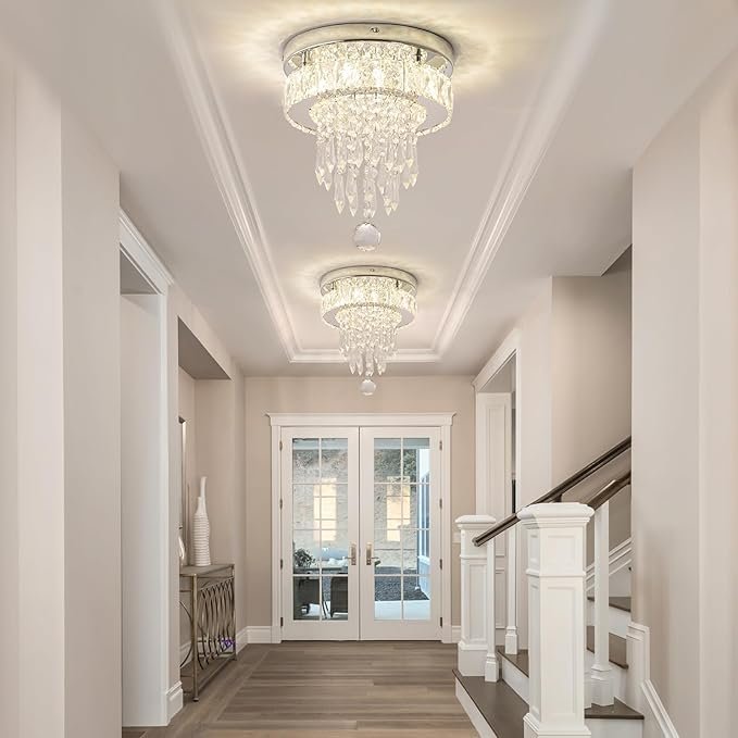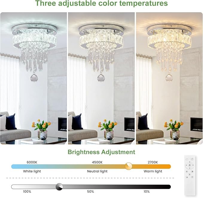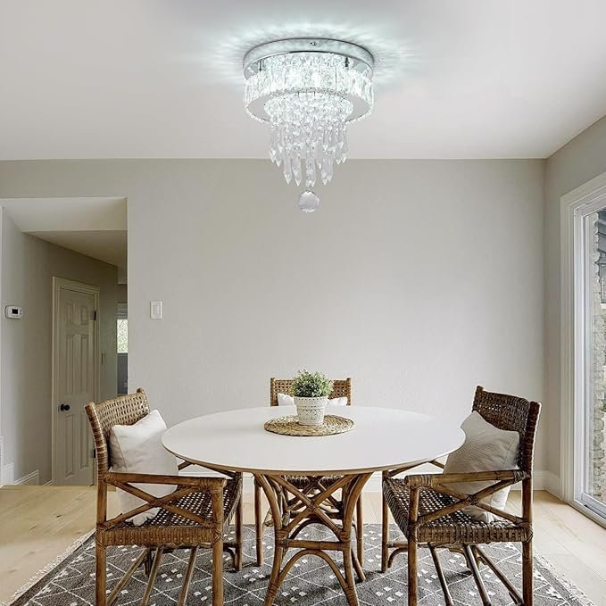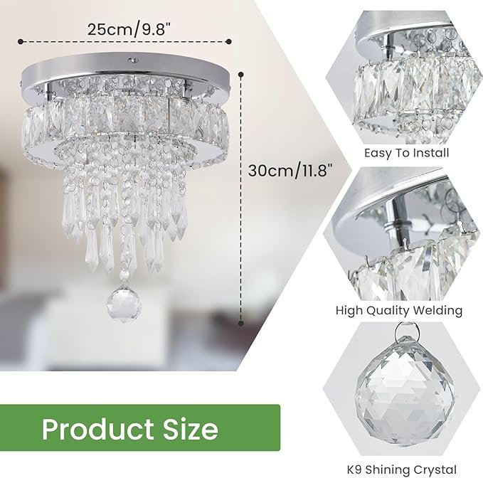 - 【Pro Installation in 8 Minutes】Pre-drilled steel frame + color-coded wires. Hang securely on ANY ceiling with 2 screws. (Small flush mount chandelier even for DIY beginners)